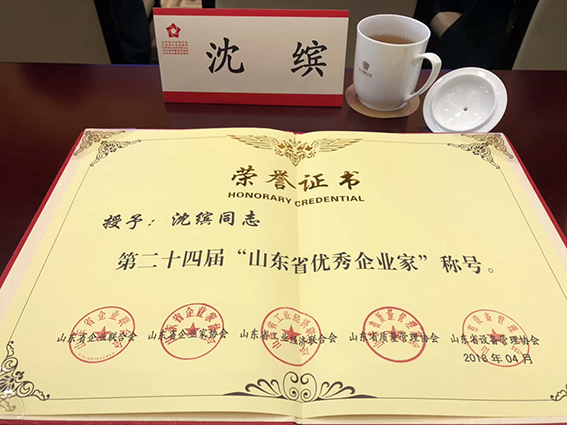 公司董事長被授予“山東省優秀企業家”榮譽稱號