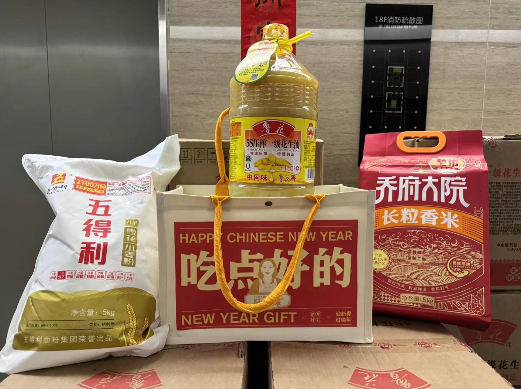 花生油、牛肉腸、面粉、大米,一份份福利飽含著公司對員工們濃濃的關愛之情,也寄托著真摯的新春祝福,極大地提升了職工的幸福指數。
